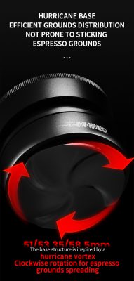 ✔️ Thiết kế tự rơi & xoay siêu mượt: Công nghệ trọng lực kết hợp vòng bi xoay nhanh gấp đôi, thao tác nhẹ nhàng chỉ 2-3 vòng. ✔️ Đế lốc xoáy mô phỏng tự nhiên: Phân bố bột đều từ tâm ra ngoài, giảm hao hụt và sai lệch khi tamping. ✔️ Hỗ trợ đa kích thước portafilter: 51mm / 53.35mm / 58.35mm, tương thích hầu hết máy espresso phổ biến. ✔️ Thân rỗng chống trượt & dễ vệ sinh: Hợp kim nhôm + thép không gỉ SUS304, chống bám bột, rửa sạch nhanh chóng. ✔️ Giảm channeling tối ưu: Mang lại shot espresso cân bằng, crema dày, giữ nguyên hương vị tự nhiên của hạt cà phê.
