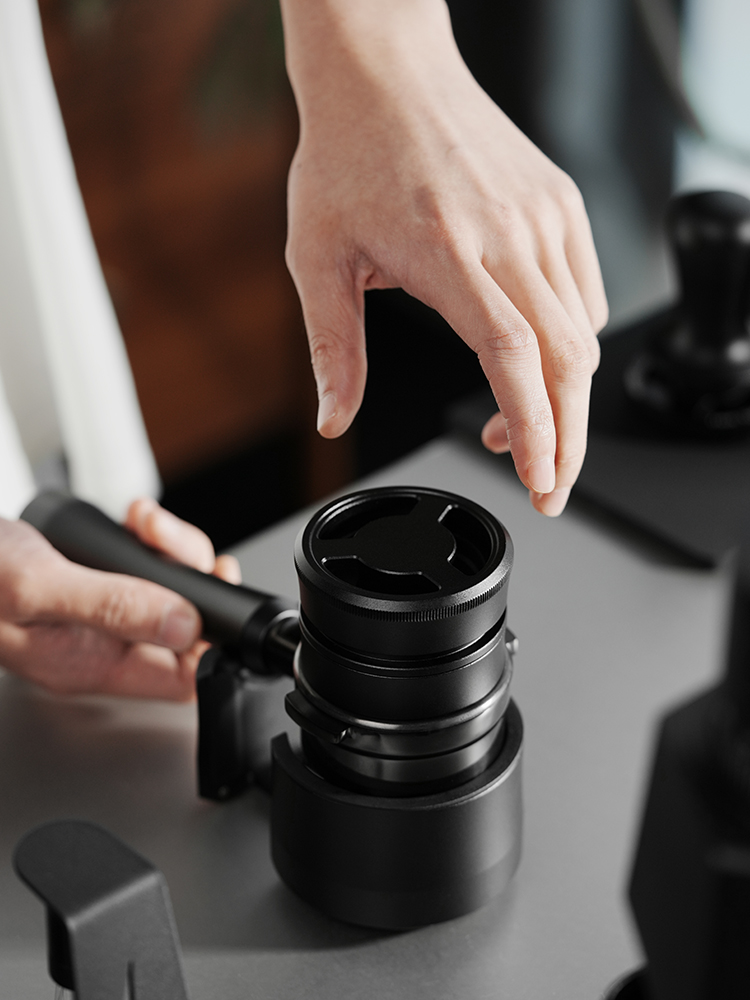 2. Đặt OCD Astra Coffee Distributor lên, xoay nhẹ 2-3 vòng để phân phối đều.