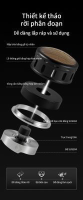 ✔️ Cơ chế trọng lực tự cân bằng: Tự động thích ứng với lượng bột, dàn đều từ rìa vào trung tâm mà không cần chỉnh tay. ✔️ Nén nhẹ bề mặt (pre-tamp): Tạo áp lực nhẹ tự nhiên, ổn định cấu trúc bánh bột trước khi tamp chính thức. ✔️ Giảm channeling hiệu quả: Bề mặt bột phẳng đều, giúp chiết xuất espresso đồng đều với crema dày mịn. ✔️ Mặt gỗ sang trọng: Kết hợp thân inox bền bỉ, mang lại cảm giác chắc tay và thẩm mỹ cao. ✔️ Tương thích rộng: Kích thước 51/53/58mm phù hợp với nhiều portafilter phổ biến.