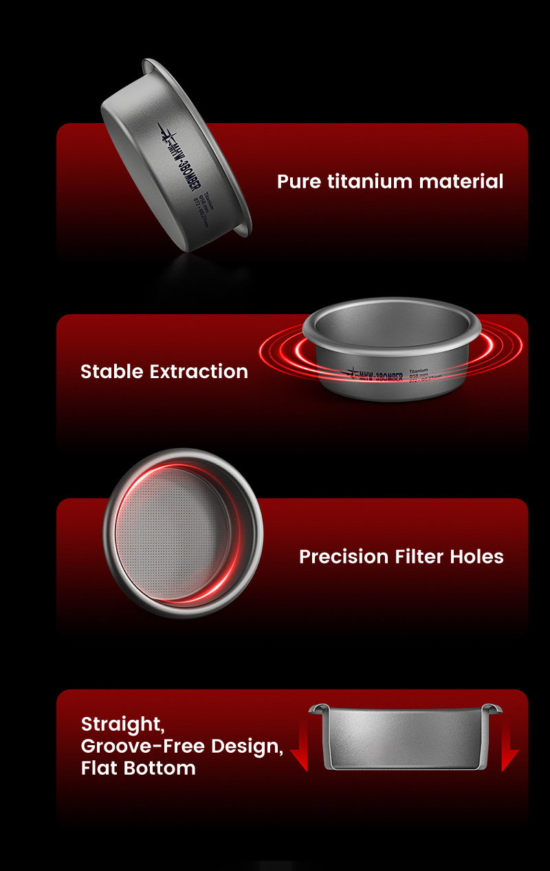 Giỏ lọc Titanium 58mm – 18g MHW-3BOMBER là giỏ lọc espresso cao cấp làm từ titanium nguyên chất ≥99.9%. Với 872 lỗ lọc siêu mịn 0.27mm và đáy phẳng, giúp chiết xuất đồng đều, tăng độ ngọt và crema dày mịn. Nhẹ chỉ 25g, bền bỉ và giữ nhiệt ổn định.
