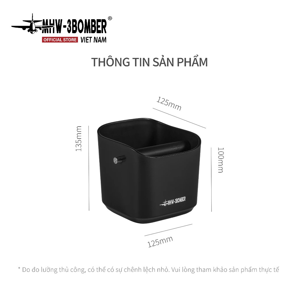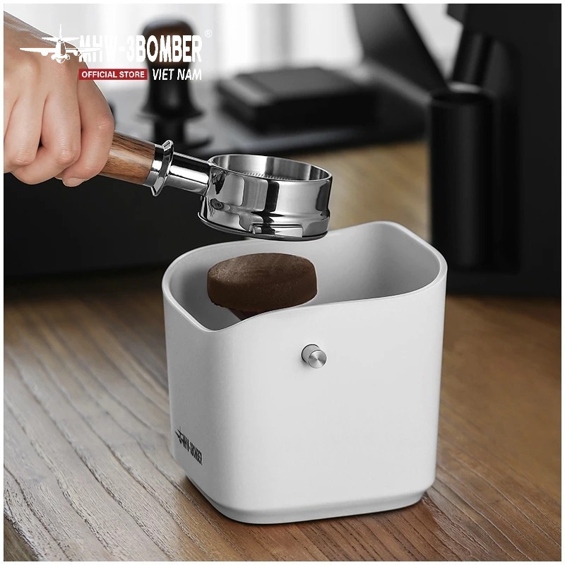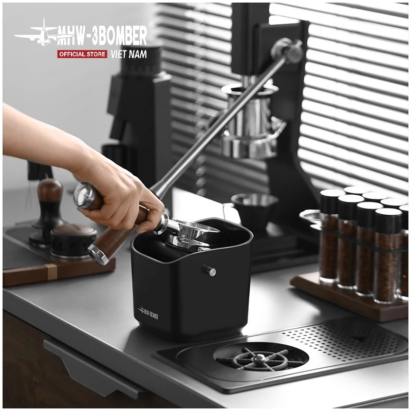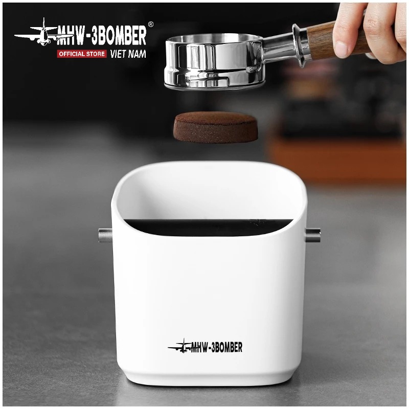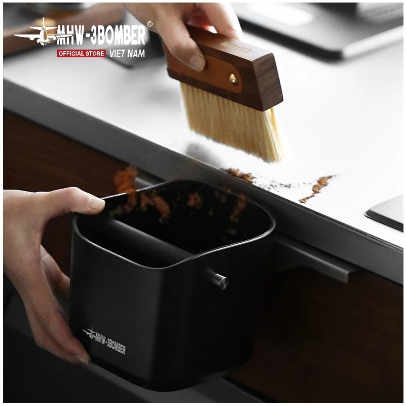 Hộp Đập Bã 1.2L MHW-3BOMBER dung tích lớn chứa tới 18 puck espresso (~1200ml). Miệng nghiêng chống văng giúp gõ bã gọn gàng, không bắn tung tóe.