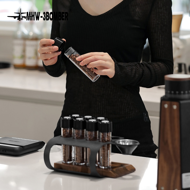 Ống đựng cà phê MHW-3BOMBER là bộ 8 ống single-dose cao cấp, mỗi ống chứa 20-26g hạt cà phê. Van một chiều thoát CO₂, ngăn oxy và ẩm, giữ tươi lâu. Chất liệu PC/PE bền chắc, thiết kế gọn nhẹ, giúp barista đong chính xác, giảm lãng phí