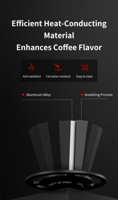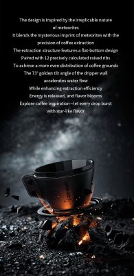 Phễu pour over Meteorite tập trung vào việc cải thiện quy trình pha chế cho liều nhỏ, với tay cầm bọc chống nóng giúp sử dụng an toàn, mang lại sự tiện lợi cho mọi không gian pha chế.