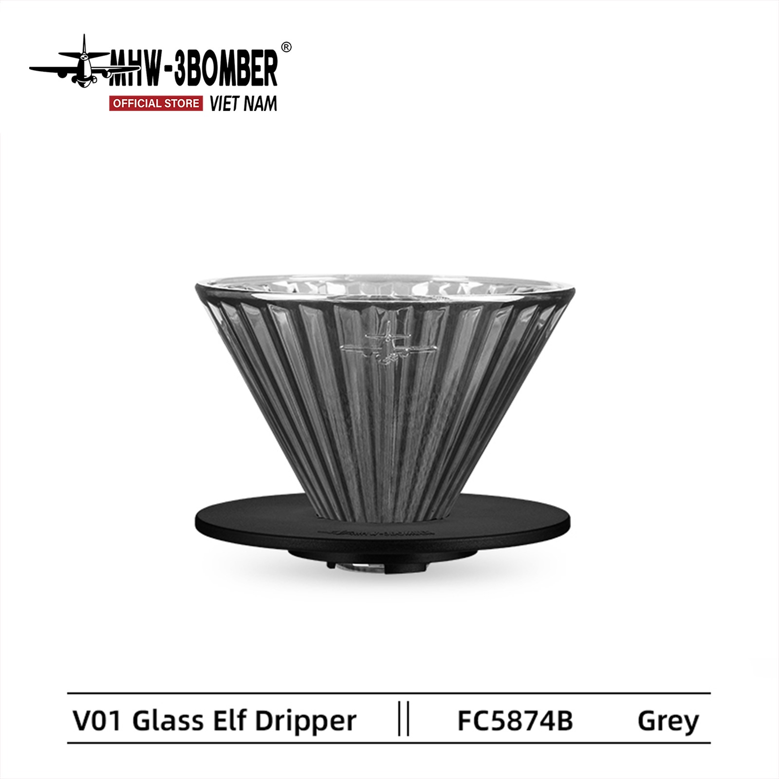 Phễu Dripper Elf – MHW-3BOMBER | Dripper Thủy Tinh Nghệ Thuật, Rãnh Tam Giác, Pha 1–2 Ly