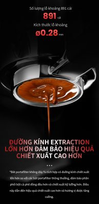 ✔️ 891 lỗ lọc chính xác: Phân bố đồng đều để chiết xuất ổn định, crema đẹp hơn.