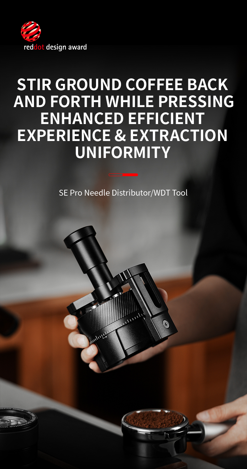 Quán cà phê giờ cao điểm: Dùng WDT SE PRO đánh tơi nhanh 18g bột – bột phân bố đều, shot espresso ổn định, ít channeling, khách nhận đồ uống nhất quán.